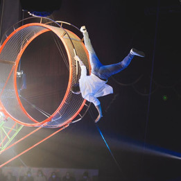 Это действительно потрясающее представление. Давно не была на таком. Очень всем рекомендую. Но слишком страшно за ребят, которые бегают по подвешенной, вращающейся конструкции. Советую всем посетить.